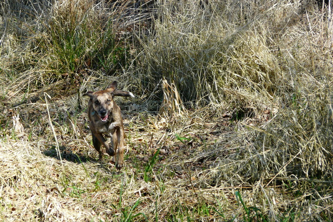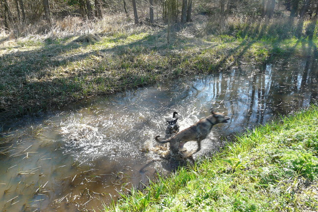 Rover jumpt ook gewoon de moddersloot in, en dan een hysterisch, blaffende Mack omdat die denkt dat ie verzuipt haha!