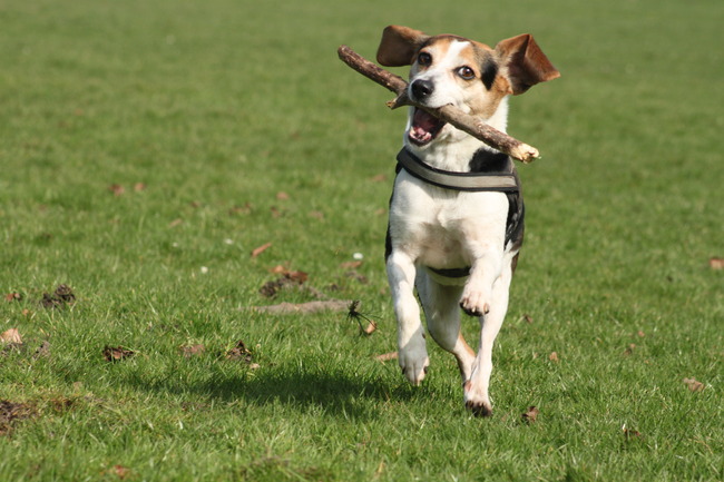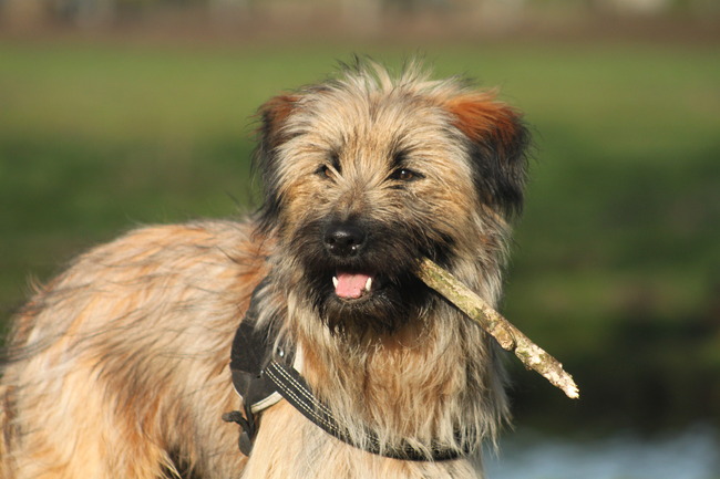 Haha wat een heerlijke gekke bekken. Met de stok in de bek lijkt met net zo'n maffiabaas