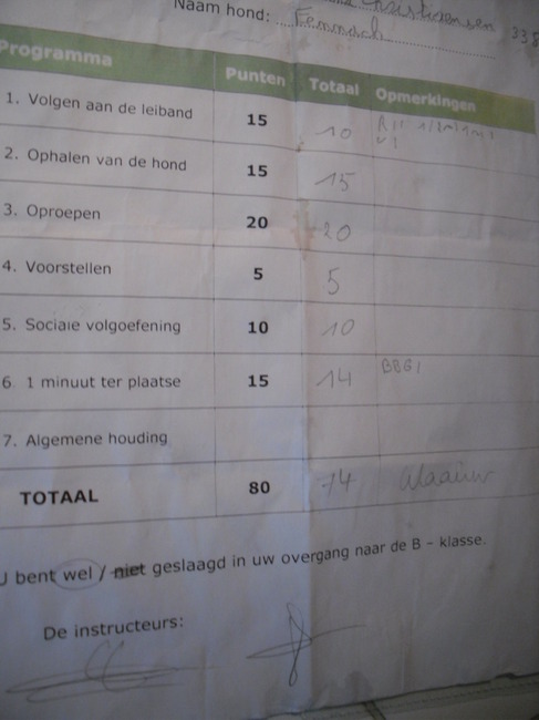 Ze deed haar volgoefening niet zo goed omdat ze nu flink pubert en het gras interessanter vind dan mijn salamiriekende hand... Maar al de rest heeft ze heel goed gedaan!