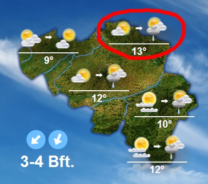 Het weer ziet er morgen als volgt uit: