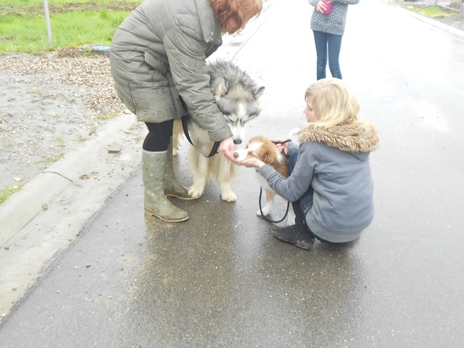 Kan zeggen dat na 2 weekjes hondenschool we al naar de andere klas mogen , Goa is een zeer slim bazeke en vlug , hij verveelt zich in de puppieklas, hij kan al zitten, liggen, blijven, in, op, door niets schrikt hem af, natuurlijk mag ik niet met de pluimen gaan lopen want Zuma mijn rots in de branding leert hem die dingen zijn agressiviteit is ook weg allemaal door mijn groot meisje en stiekem leert Goa haar minder koppig te zijn en doet ze het nu prima op de hondenschool, moet niet meer achter haar aanlopen ze komt gelijk terug joehoe