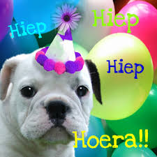 feliciteer haar maar! mijn hond is 19 mei 1jaar geworden, ze heeft een flink bot gekregen( minn andere hond ook want anders verstoor ik de rangorde)