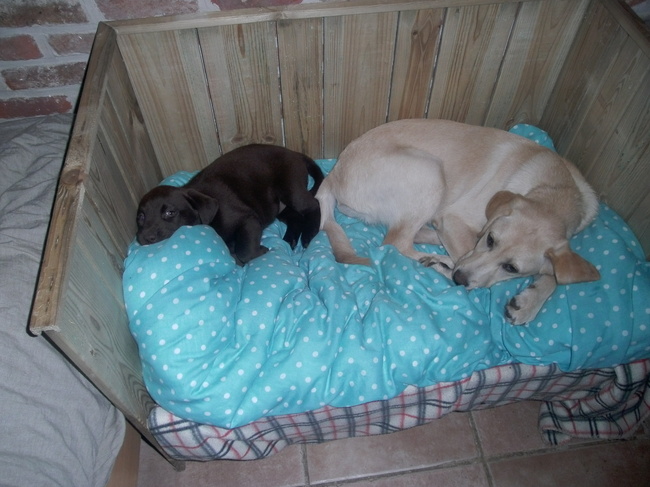 Wij hebben hier 2 labradors, blond teef en bruine reu. ze zijn nog niet volwassen.