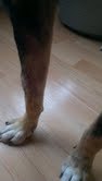 Een voedselallergie uit zich niet op de plaats waar deze hond klachten laat zien. Wanneer het een voedselallergie betreft zullen er klachten zijn aan de pootjes, in de oksels en liezen en de oren.