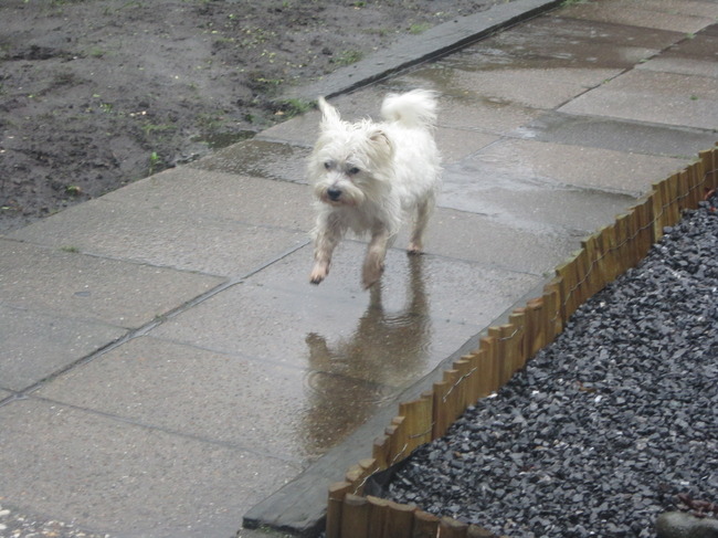 Twinko houd niet van regen dus behalve een plasje en poepje zal hij weinig buiten doen vandaag.
