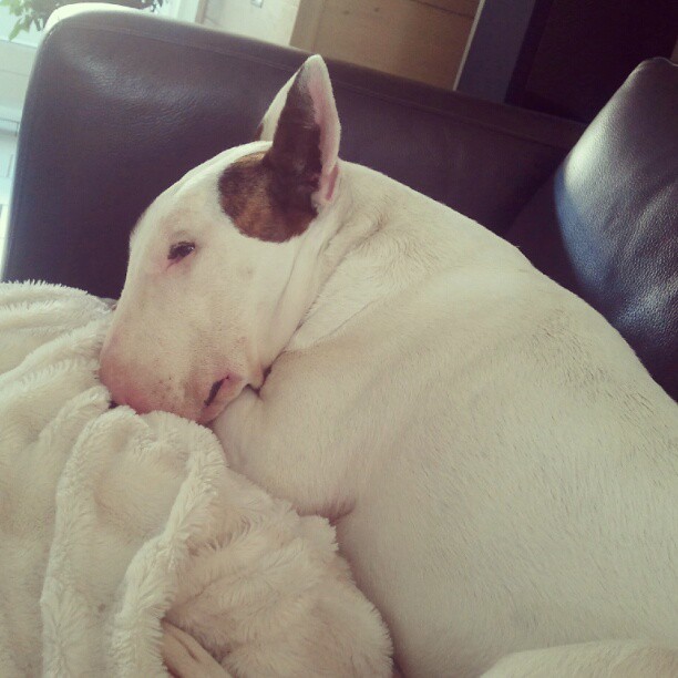 Dus nu zit ik eens even op de bank met een dekentje, colaatje op tafel, laptop op schoot, zit ik dit te schrijven, én Bink op schoot.