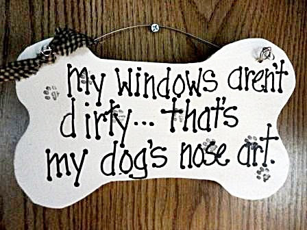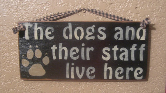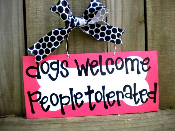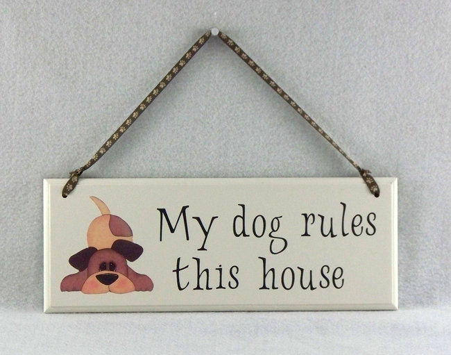 eerder heb ik wel eens gelezen hier op HP dat er mensen zijn die een bordje of tegeltje thuis aan de wand hebben hangen met teksten over honden, bv huisregels voor bezoekers ofzo..