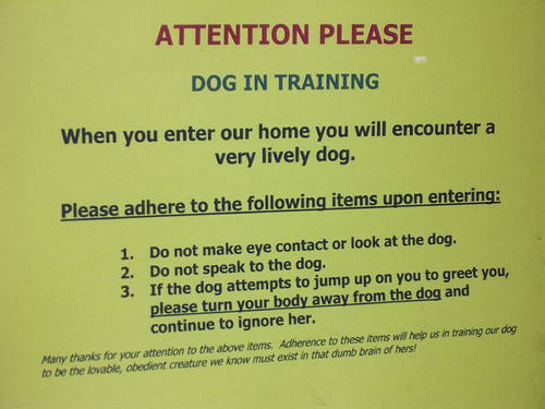 Zoiets bedoel ik overigens wel.. met een tekst als; dat bezoek rekening houdt met de hond, de hond met rust laat, pas als de hond naar het bezoek toekomt aandacht geven.. etc.. soort huisregels dus..