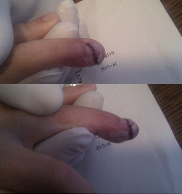 Mijn man's vingertopje is er eens afgebeten door een hond. Deze is er weer opgenaaid. Het topje van zijn (ring)vinger hing alleen nog maar aan een stukje vel ernaast... Brr... Als ik er nog aan denk... Maar! Het is goed gekomen! Helaas geen foto bij de hand... Je ziet natuurlijk het litteken van de hechtingen nog wel..