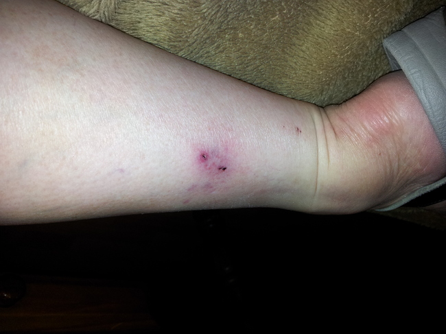 Ik 2 gaatjes en blauw op mijn been, en spero moeten we ook even afwachten op het oog zie ik niks.