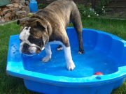 Met haar snuit onder water rondjes draaien tegen de rand van het zwembad...maar spijtig genoeg heb ik daar nog geen foto van...