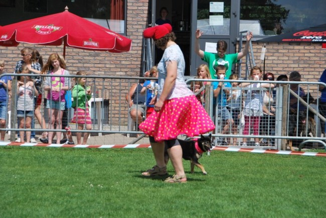 Met geduld kan je een shiba alles leren, Kaylee op wedstrijd doggy dance iin een gropesdans met in totaal zes honden die de kabouterdans van plop dansen...