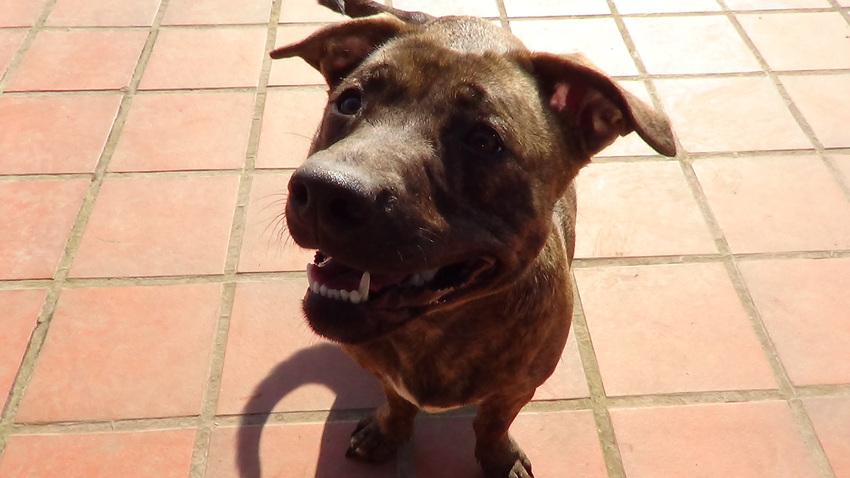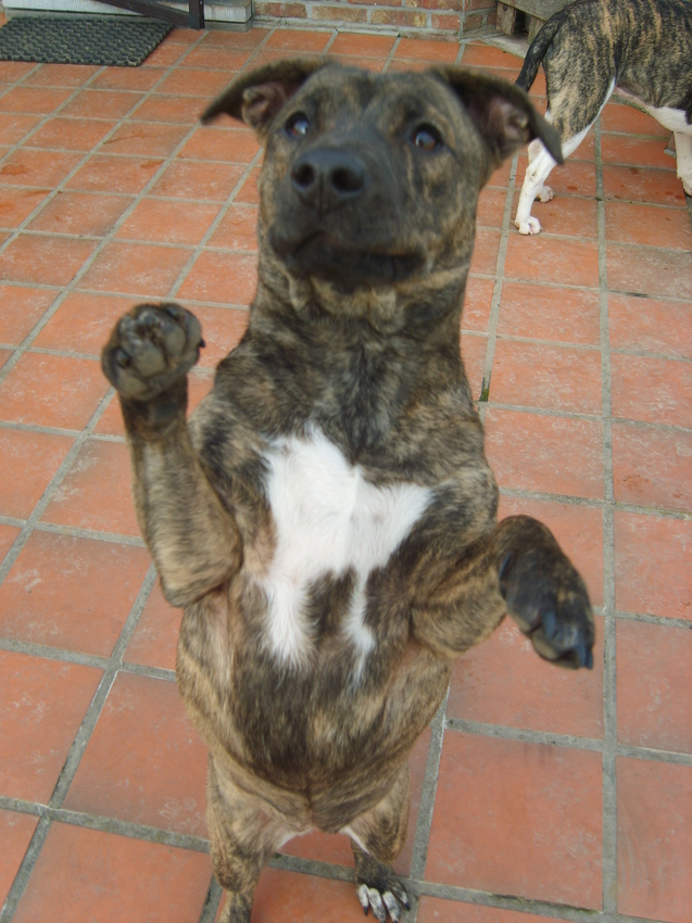 Mila is een kruising Staffordshire Bull Terrier met Chihuahua.