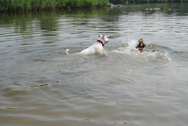 Vanochtend wreed wakker gemaakt door de deurbel, Lis en Whisper stonden voor de deur en ik was weer is door me wekker heen geslapen.. Snel aangekleed en lekker met de hondjes naar buiten gegaan! Ze hebben weer lekker gespeeld en gezwommen