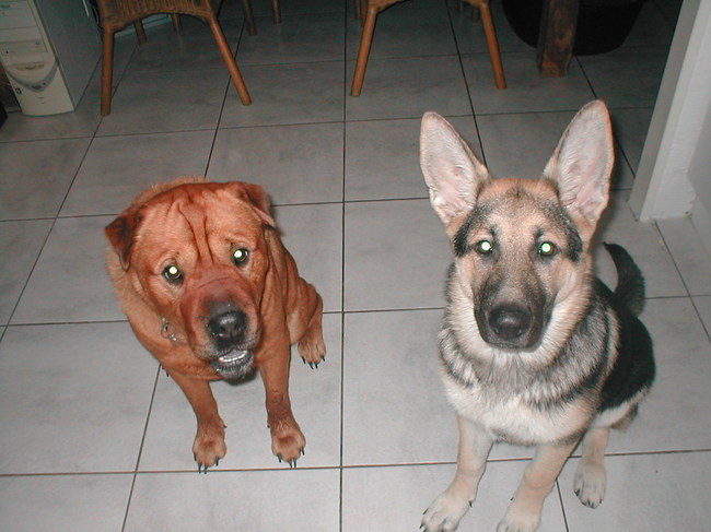 de rechter hond is van ons zelf en is een kruising duitse herder x zwitserse witte herder.