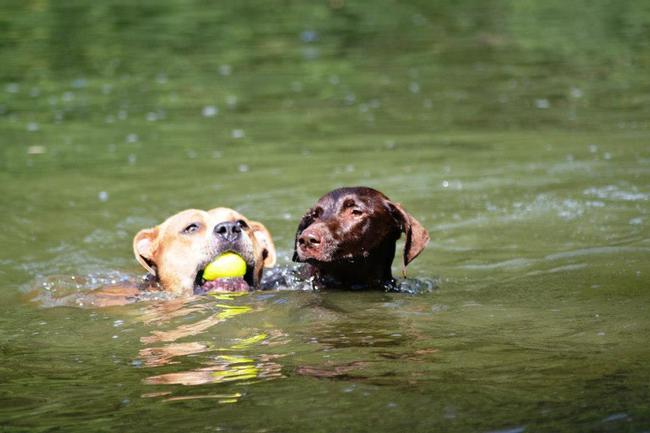 een hoopje hond aan het zwemmen