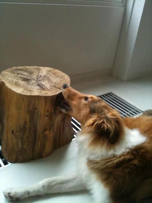 heerlijk een autoband, gewoon vragen op de sloop. de autoband heeft van binnen een richel, daar kan je brokjes of voertje in verstoppen, ze zijn er zoet mee.