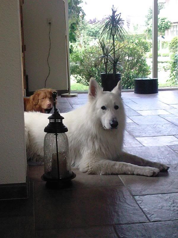 Mexx ligt gewoon heel braaf te wachten of hij al mag die is niet zo zwaar beledigd zo te zien.