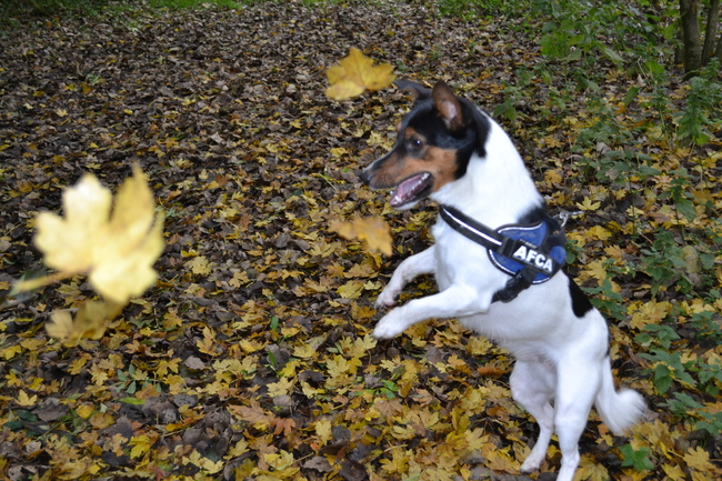 Heerlijk even met Diesel naar het bos / park geweest en wat is het daar leuk met al die blaadjes die van de bomen vallen!!
