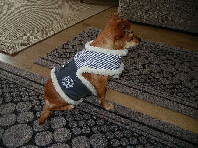 de hondjes van mijn ex-schoonzus dragen ook jasjes omdat ze anders bij koud weer echt weigeren om buiten te gaan (het zijn teckels - geen dwerg maar nog kleiner, ben ff de naam kwijt).