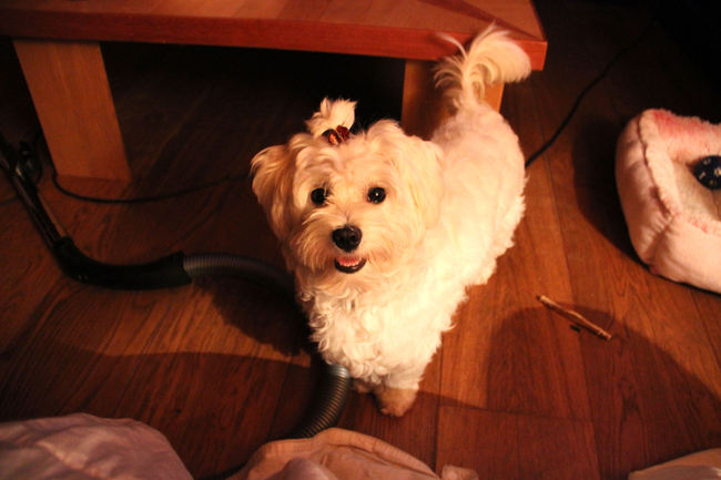 Net probeerde ze op de bank te springen, vanmorgen probeerde ze op bed te springen...