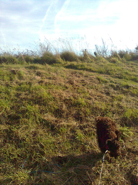 Ik moet al een eind gaan voor tussen de bladeren te kunnen lopen . Haha moet nog lachen de eerste keer dat ik op zo een groot gedroogd blad trapte ,igor schrok daar van. maar een beetje verder op de wandeling ging het al veel beter ,igor geraakt de herfst gewoon.