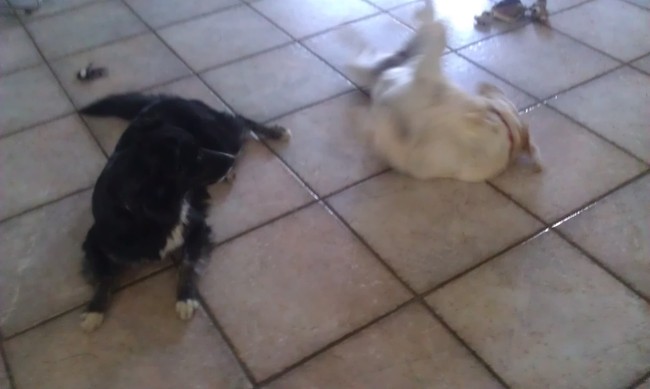 Vandaag ben ik met Mara even langs Sanne en Evy geweest, en de honden hebben zich prima vermaakt!