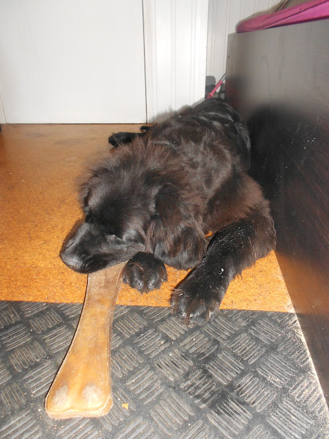 Hallo,We zijn weer 's middags thuis dus trekken we straks erop uit om weer een leuke middag te hebben. Want meestal slaapt Raya in de middag maar ze is heel druk bezig met het kauwen op een groot been
