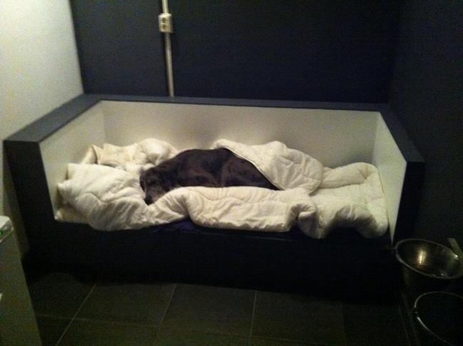 Onze hondenslaapkamer voor broer en zus, een heerlijk bed van ruim 2 meter lang! Home-made by mijn manneke!