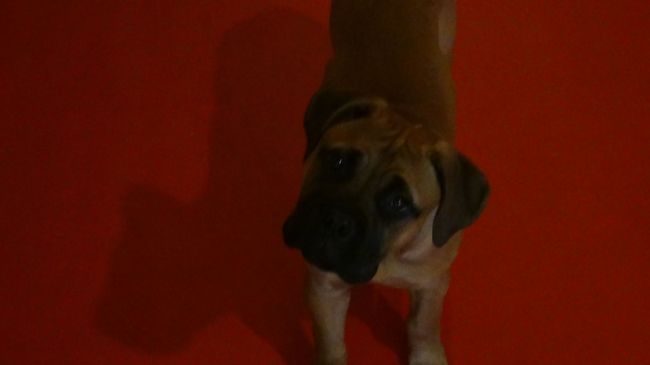 Het is een teefje en heet heel toepasselijk Juicy het is een bullmastiff ondertussen zit ze alweer in haar 17de week weegt nu 21 kg en is 45kg.