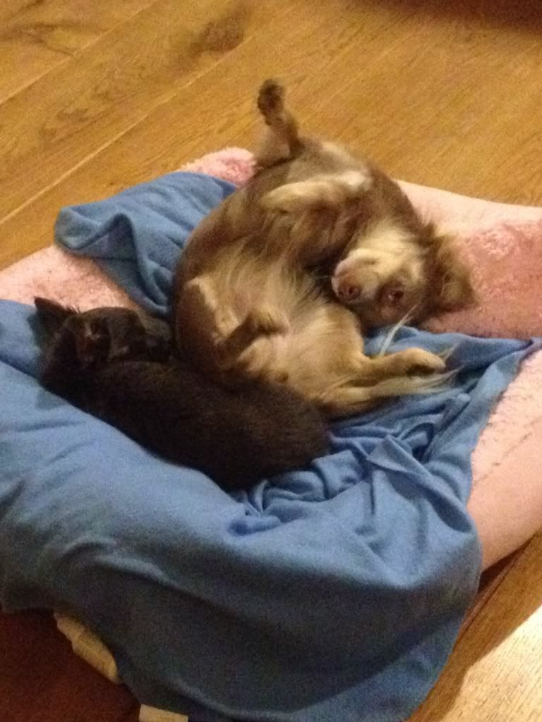 Jaa ze gaan steeds beter met elkaar om, en chihuahua's zijn zoooo schattig! Wil wel een hele roedel
