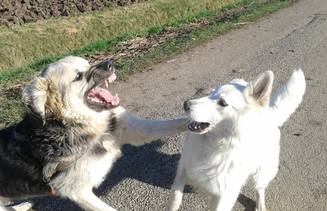 Een erg moeilijke keuze werd het! Ik zelf had liever een toller, maar de rest van de familie had toch liever een witte herder. Dit zou mams van de witte herder zijn (Pim zijn speelmaatje)