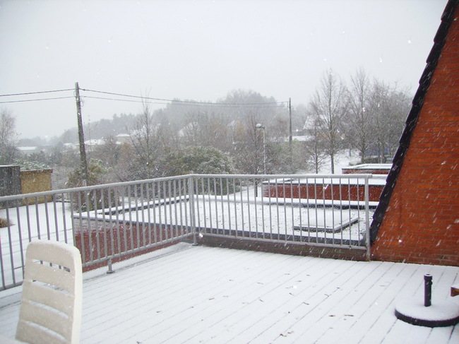 Dikke vlokken dwarrelen naar beneden, en blijft lekker liggen, beau was niet echt onder de indruk, wij des te meer, vooral tijdens het inladen van de kids in de auto, ik onderuit ben gegaan met de kleine meid op de arm....