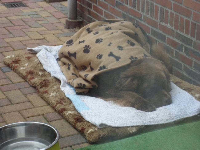 Denk dat het voor de hond ook niet veel uitmaakt waar hij op ligt, het allerliefst liggen ze hier op de koude vloer zomer en winter.
