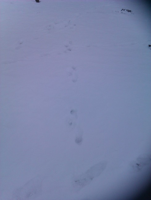Sporen Daan naar me toe - indruk in sneeuw ca 8cm