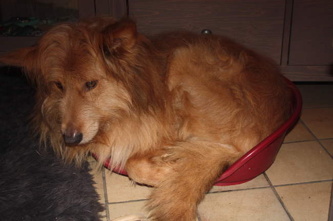 Kijk ik net op, zie ik dat Paco zich in Terra's mandje gewurmd heeft...