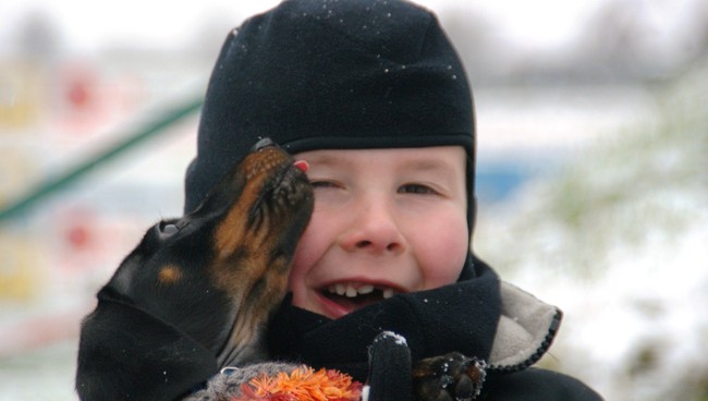 Hij loopt nu ook al zonder jasje in de sneeuw (plasje doen)