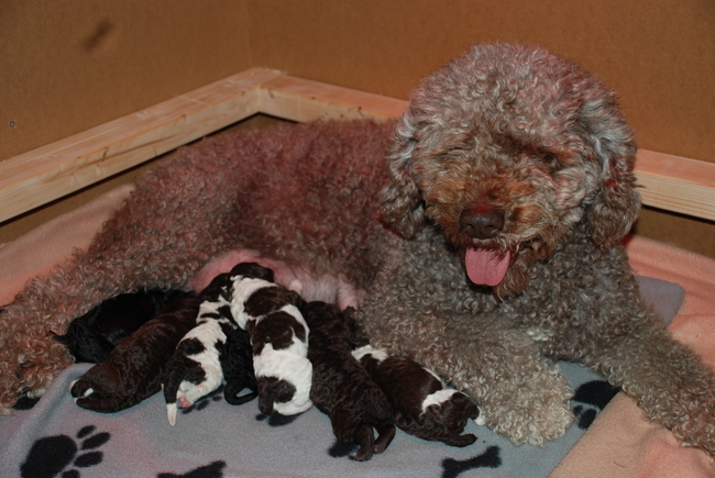 afgelopen woensdag, heeft donna 7 spaanse waterhond pups gekregen.
