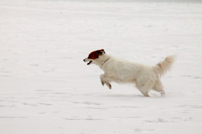 Dit was vorig jaar best gevaarlijk een witte hond in de sneeuw heb ook de nodige commentaren gekregen daarover hier in de bos
