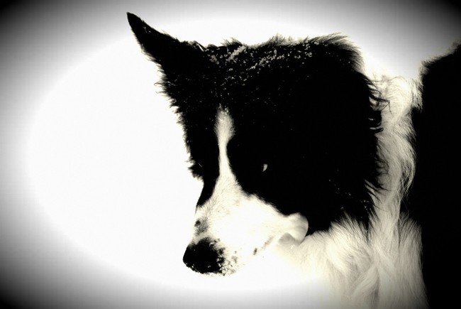 Wat ziet Taz er nog prachtig uit voor 12 jaar...., geen grijs haartje op zijn snoet te bekennen....., wit van de sneeuw okay....