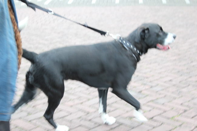 Meestal loopt hij voor me, want hij heeft altijd haast haast haast. Ook los. Dat is iets wat hij al vanaf het begin heeft en het is er niet uit te trainen. Ook het normaal meelopen was een drama, omdat alle hier alom geprezen technieken bij Dobby gewoon niet werken. Ook niet met maanden geduld.