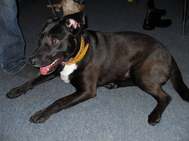 labrador met....................stafford ofzo? geen idee! Wel een leuke hond!