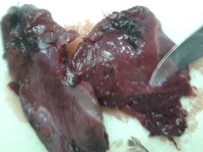 Dat zwarte zijn veren, want ik heb het er even snel uitgesneden, was het toch niet van plan zelf op te eten