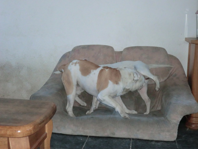 toen max helemaal door het dolle ging, had cash er genoeg van, keek me aan, en gromde zachtjes naar max, dus toen heb ik het afgebroken.