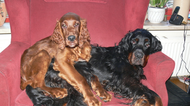 Bayley en Hunter, toen Hunter nog klein was veroverde hij al de bank...^^
