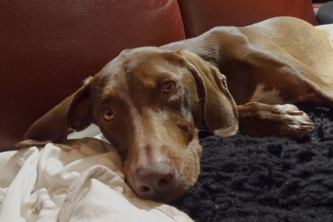 Ik ben geen ochtend hond, terwijl vrouwtje klaar maakt voor haar werk slaap ik nog ff verder