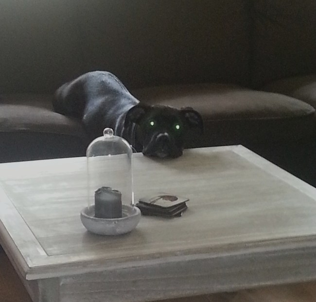 Ik zit Sushi te eten..en Lady loopt subtiel een paar keer langs me af met haar neusje in de lucht.. En als ik dan richting haar kijk..kijkt ze snel weg en gaat ze ergens anders snuffelen. Volgens mij heeft er iemand zin in Sushi..haha..