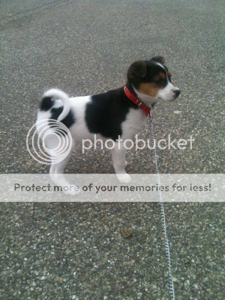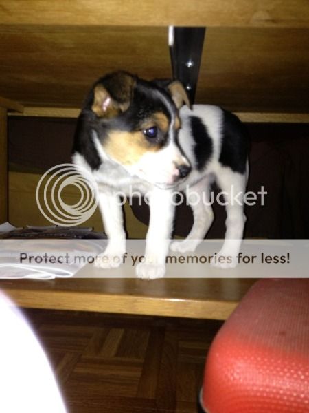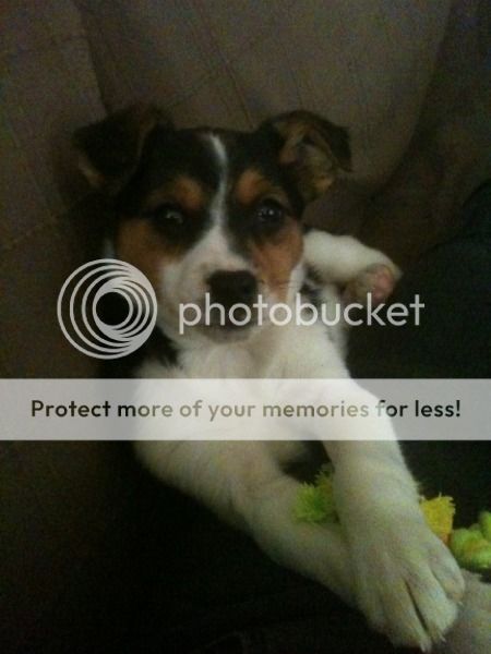 Rigby is een boerenfox teefje van 8 weken oud, zo van de boerderij. Weer een driekleurige