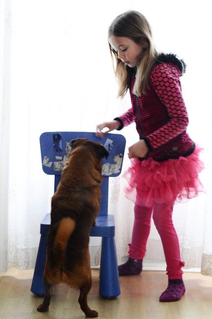 Ik vind het ook een heel goede manier om de band tussen kind en hond te versterken. Wendy is heel trots op wat Skip allemaal van haar leert. Ze leren trucjes, zoals ergens opklimmen, slalom oefeningen etc, en dat zijn natuurlijk juist de dingen die kinderen geweldig vinden. En Skip, die is natuurlijk weer helemaal happy met al die extra aandacht.