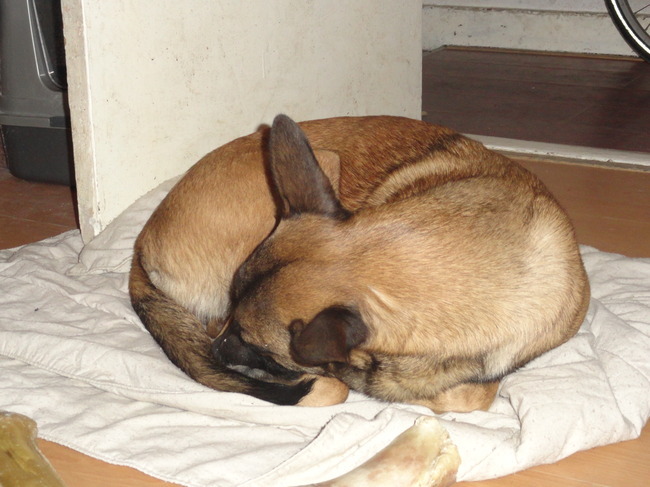 Vino slaapt zo bijna altijd en dan met haar neus in haar staart.